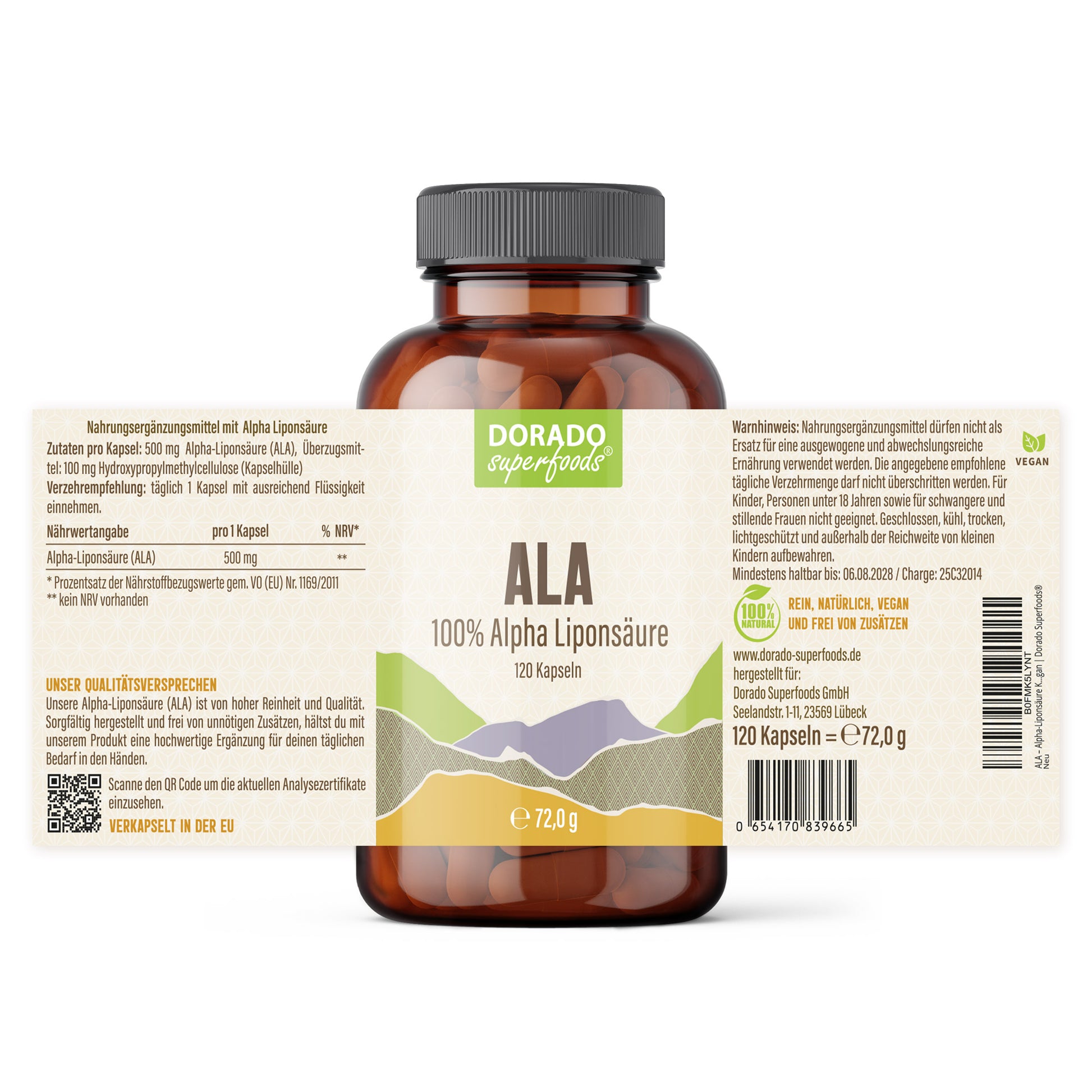 ALA – Alpha-Liponsäure Kapseln 500 mg | 120 Stück – 4 Monate Vorrat