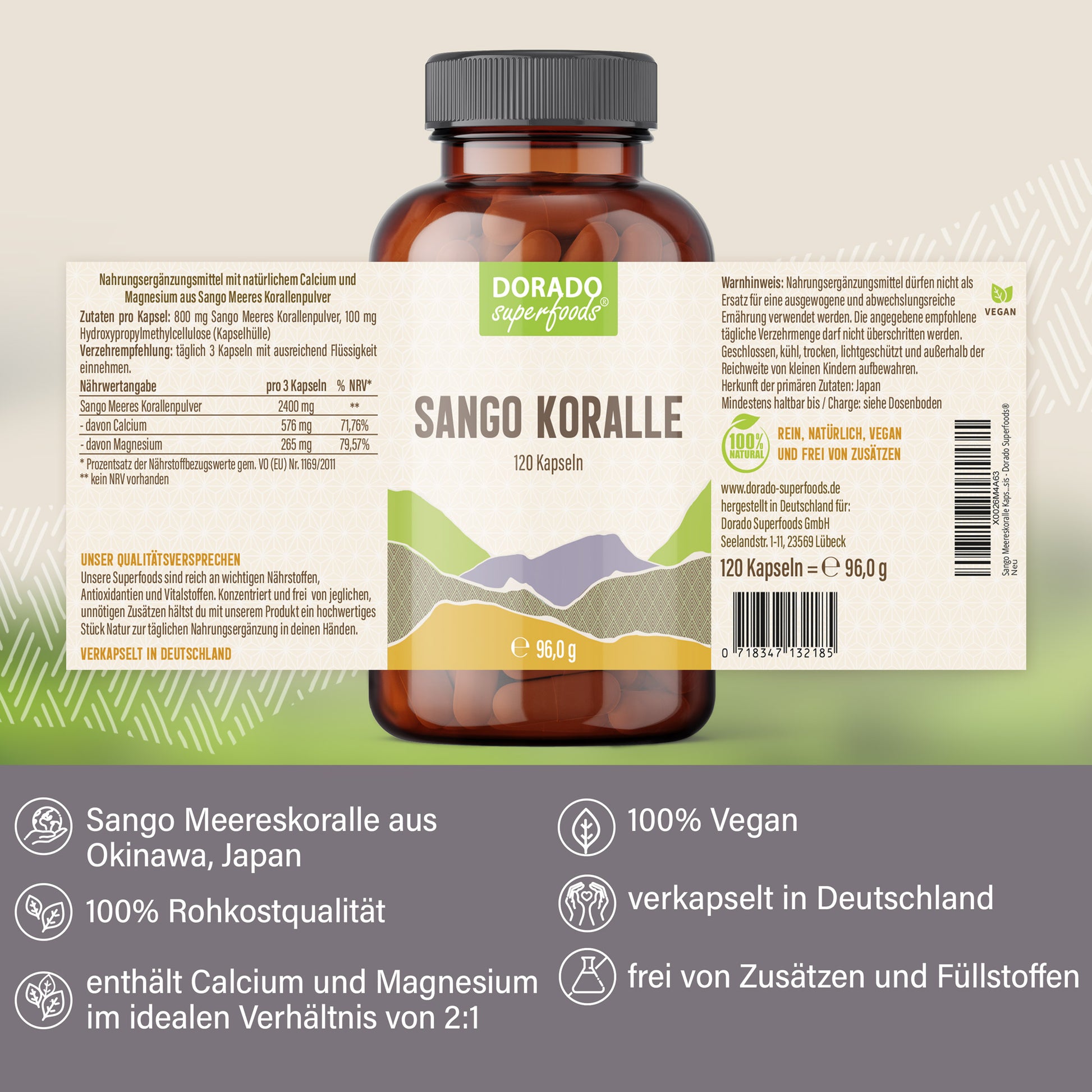 •  Nahrungsergänzungsmittel mit natürlichem Calcium und Magnesium aus Sango Meeres Korallenpulver